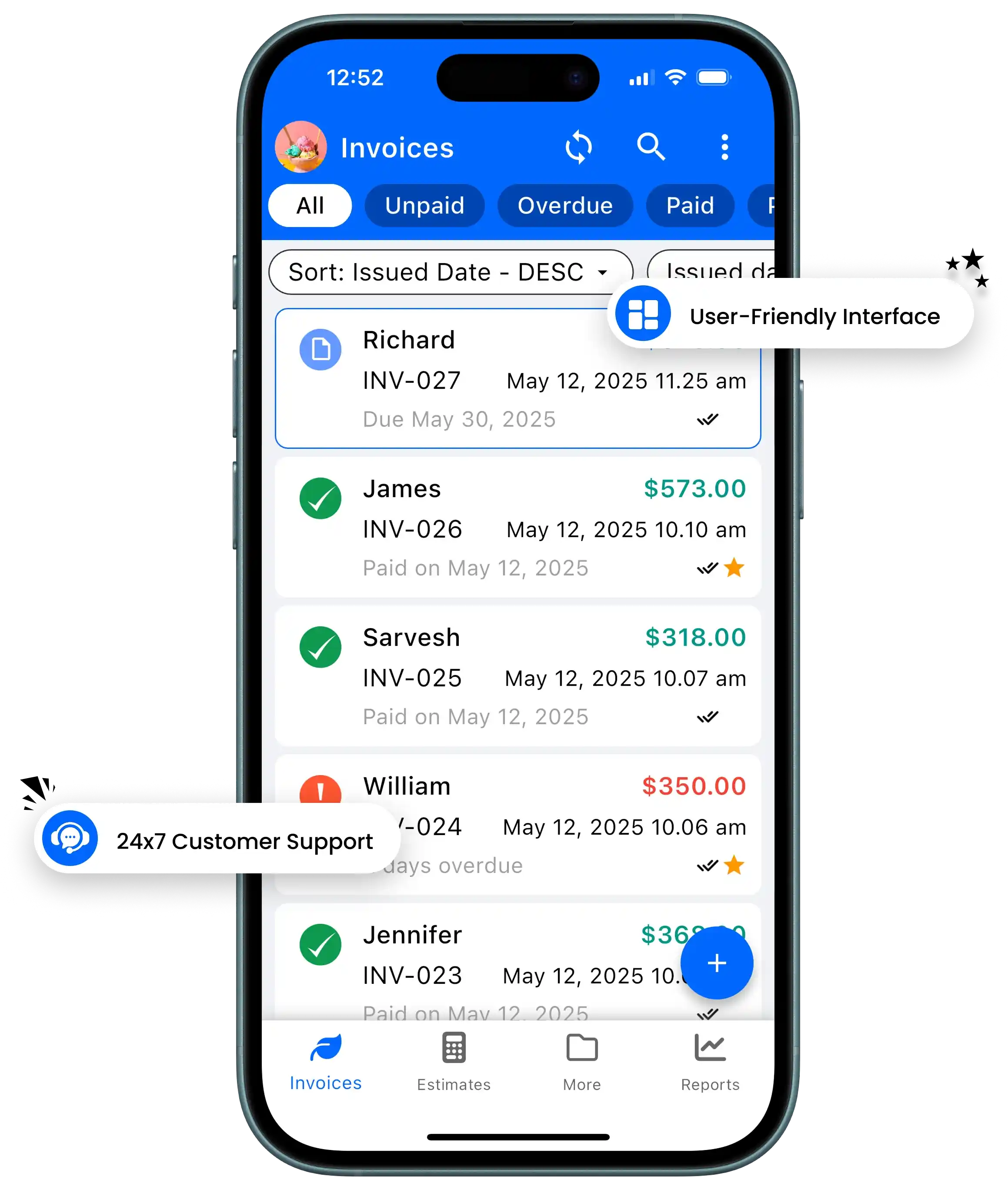 Our mobile application provides a user-friendly interface and excellent features for day-to-day invoicing process.