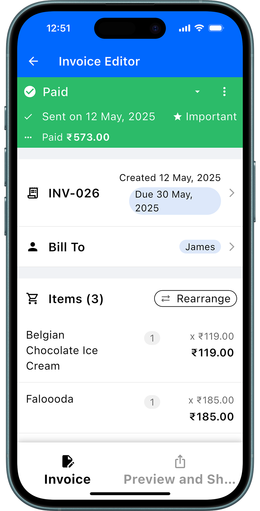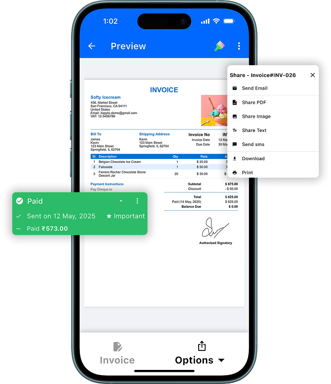 Using the InvoiceTemple iOS app for invoice creation eliminates the work of creating manual invoices. No need to depend on papers and spreadsheets for invoice generation when our InvoiceTemple iOS app provides a reliable and professional invoicing experience.