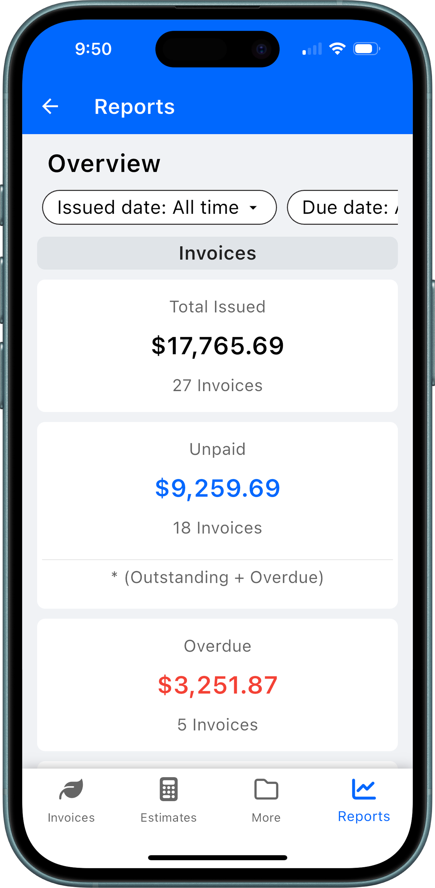 Business financial reports say your business performance. With the InvoiceTemple app, accurate and professional financial reports can be generated on iPhone or iPad